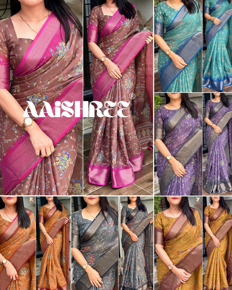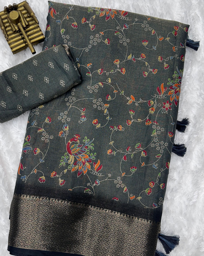 Pattern-Designer padding printed saree with zari weaving in full saree and zari boder & tussles in pallu