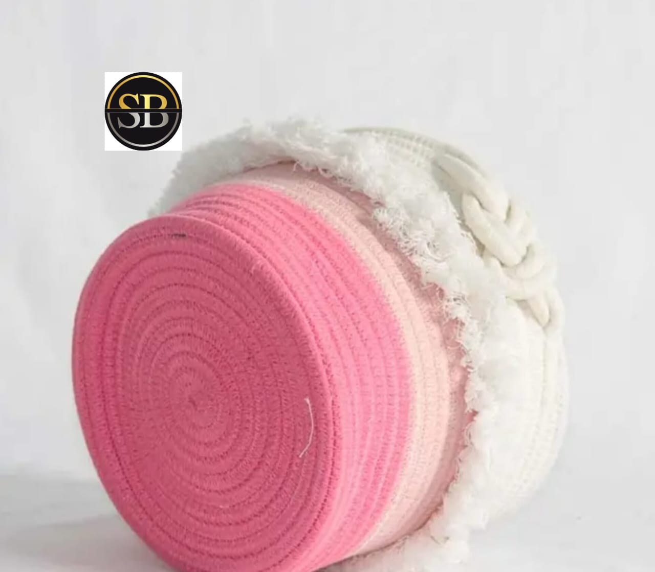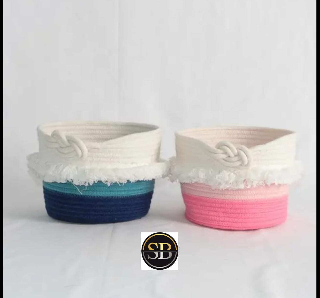 Eco-friendly Handmade Cotton Rope Aqua & Pink Knot Baskets For Multipurpose