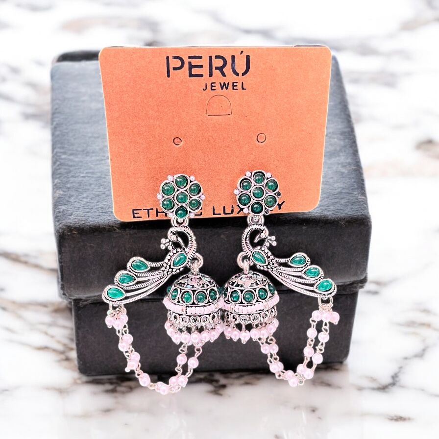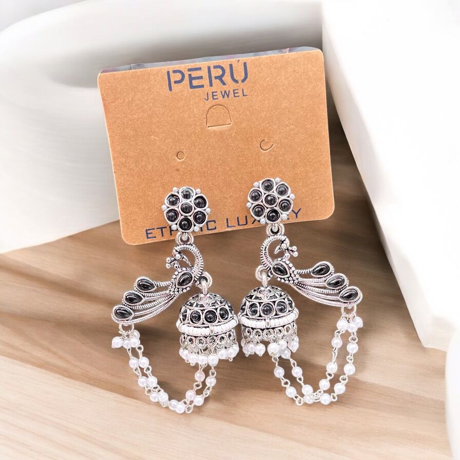 Oxidized Peacock Jhumka