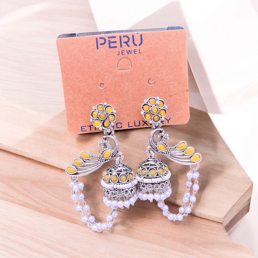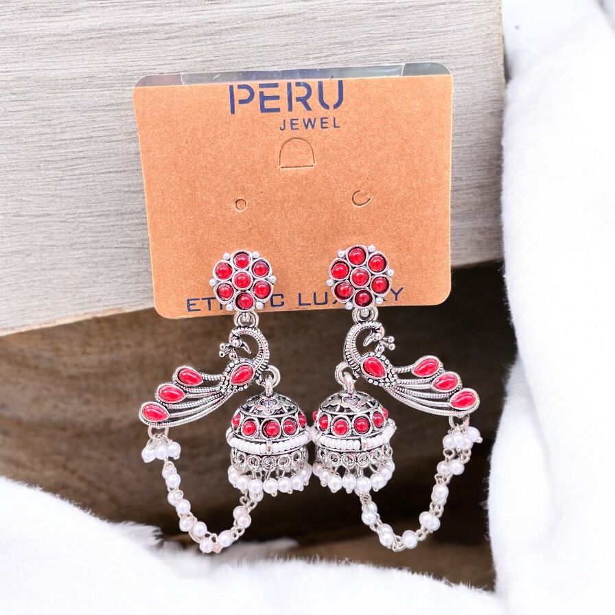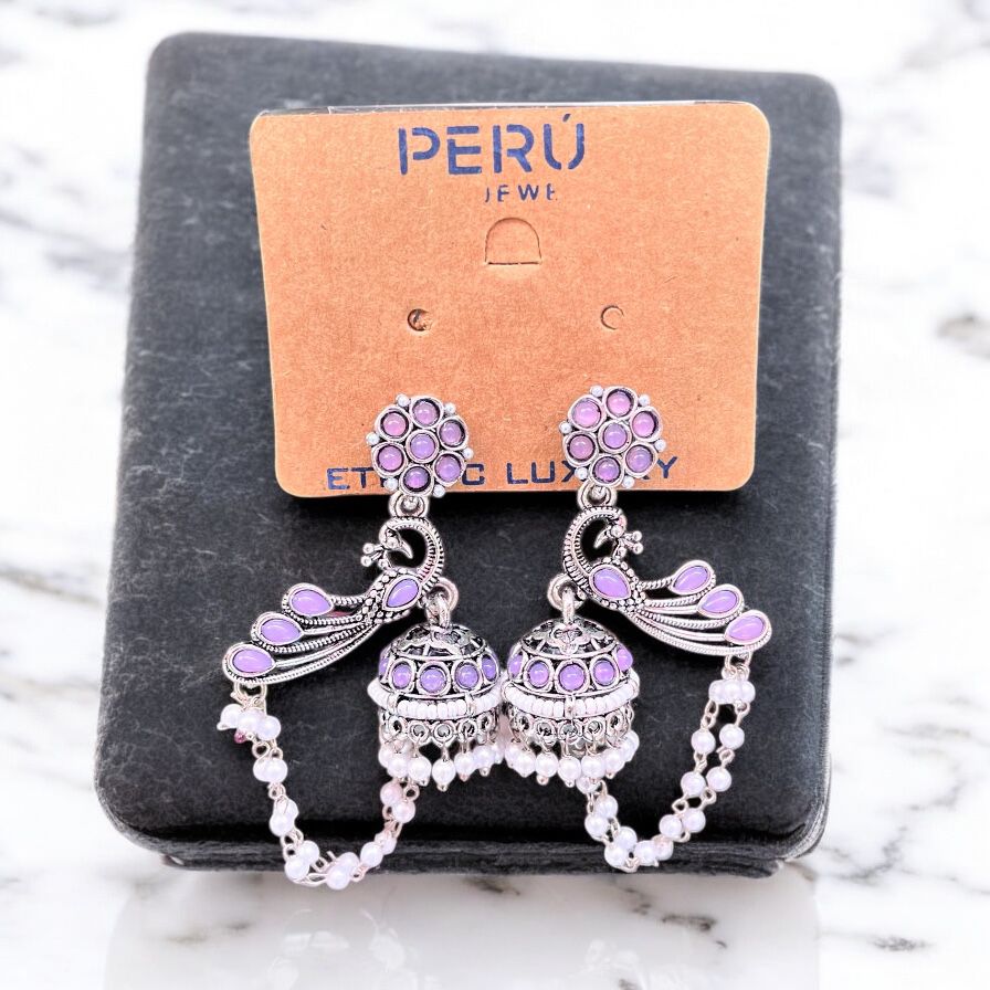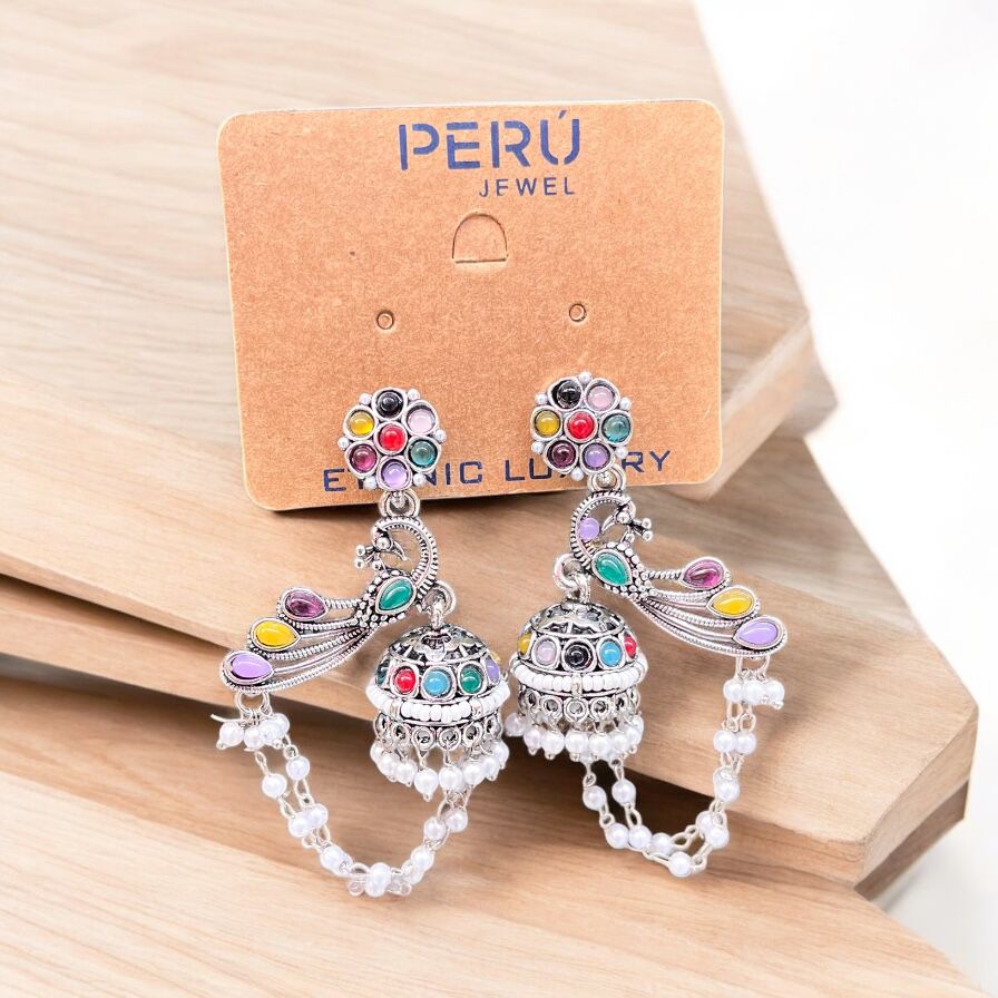 Oxidized colorful peacock Jhumka